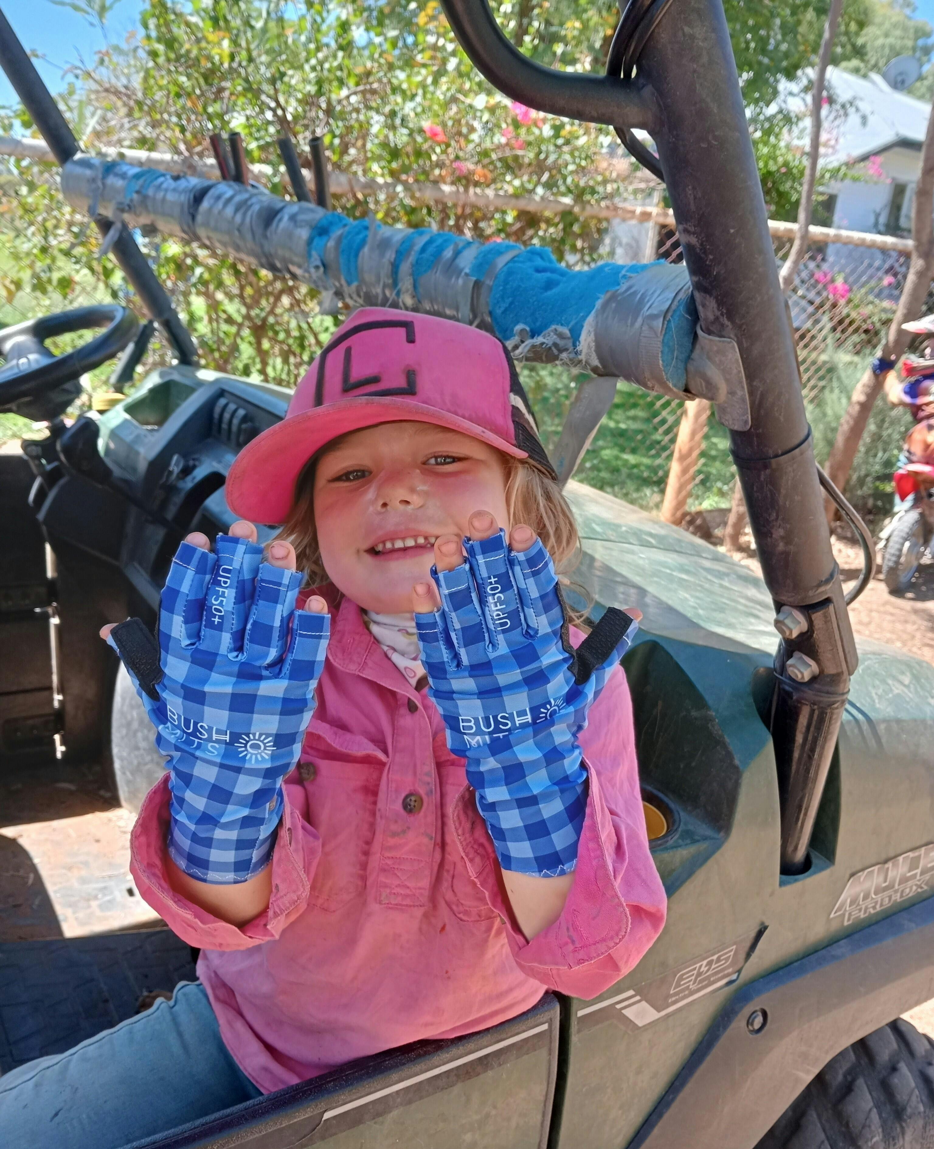 Hamilton's Blue Gingham UPF 50+ Sun Protection Gloves (EXT SL)
